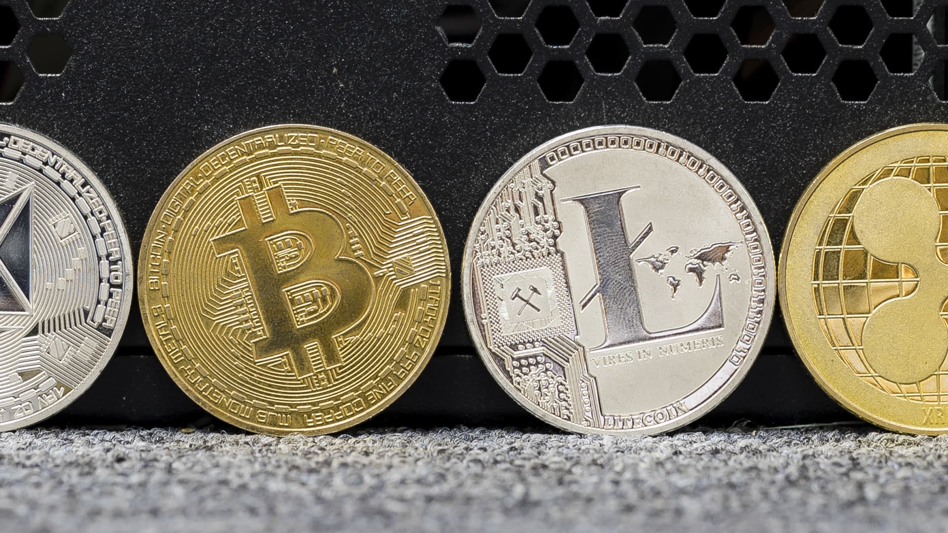A photo illustration of digital cryptocurrency Litecoin (LTC), Bitcoin (BTC), Ethereum (ETH) and Ripple (XRP) is seen on September 13 2018 in Hong Kong, Hong Kong.