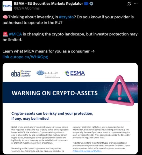 ESMA’s efforts to streamline and unify crypto regulation collide with growing tensions among EU member states over the so-called “passporting” rule – a key feature of the MICA framework that allows companies licensed in one country to operate across the bloc without needing separate approvals.