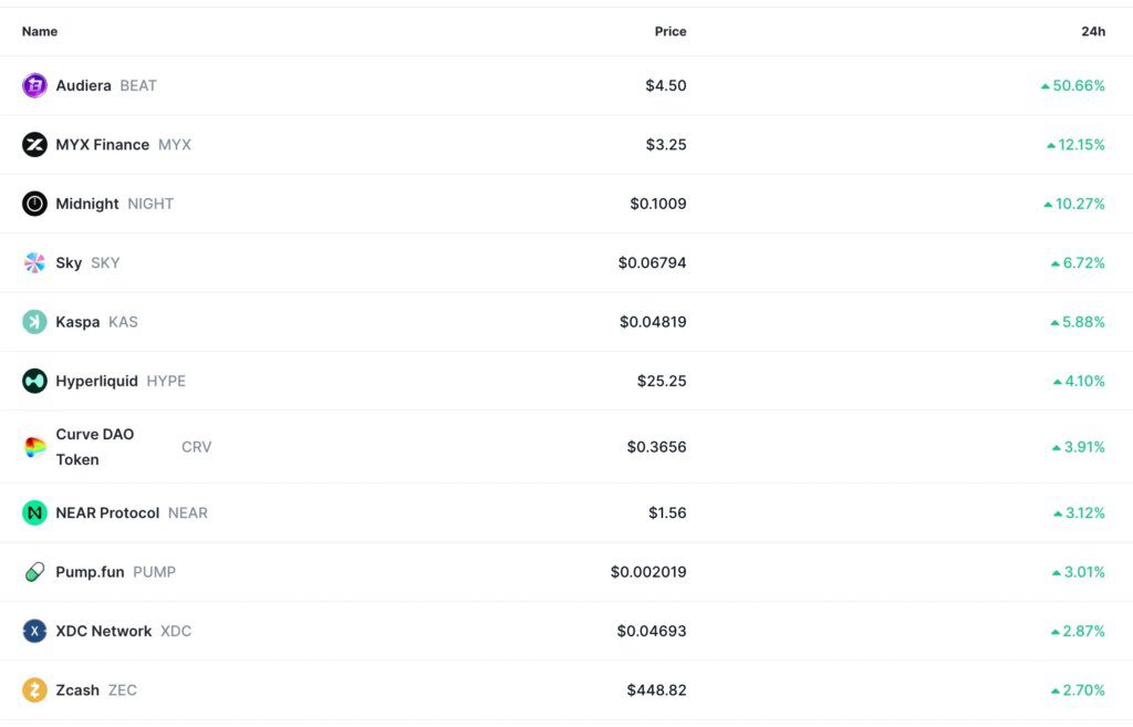 Other top leaders in this crypto market rally include Avantis (AVNT), Audera (BEAT), and Meteora.