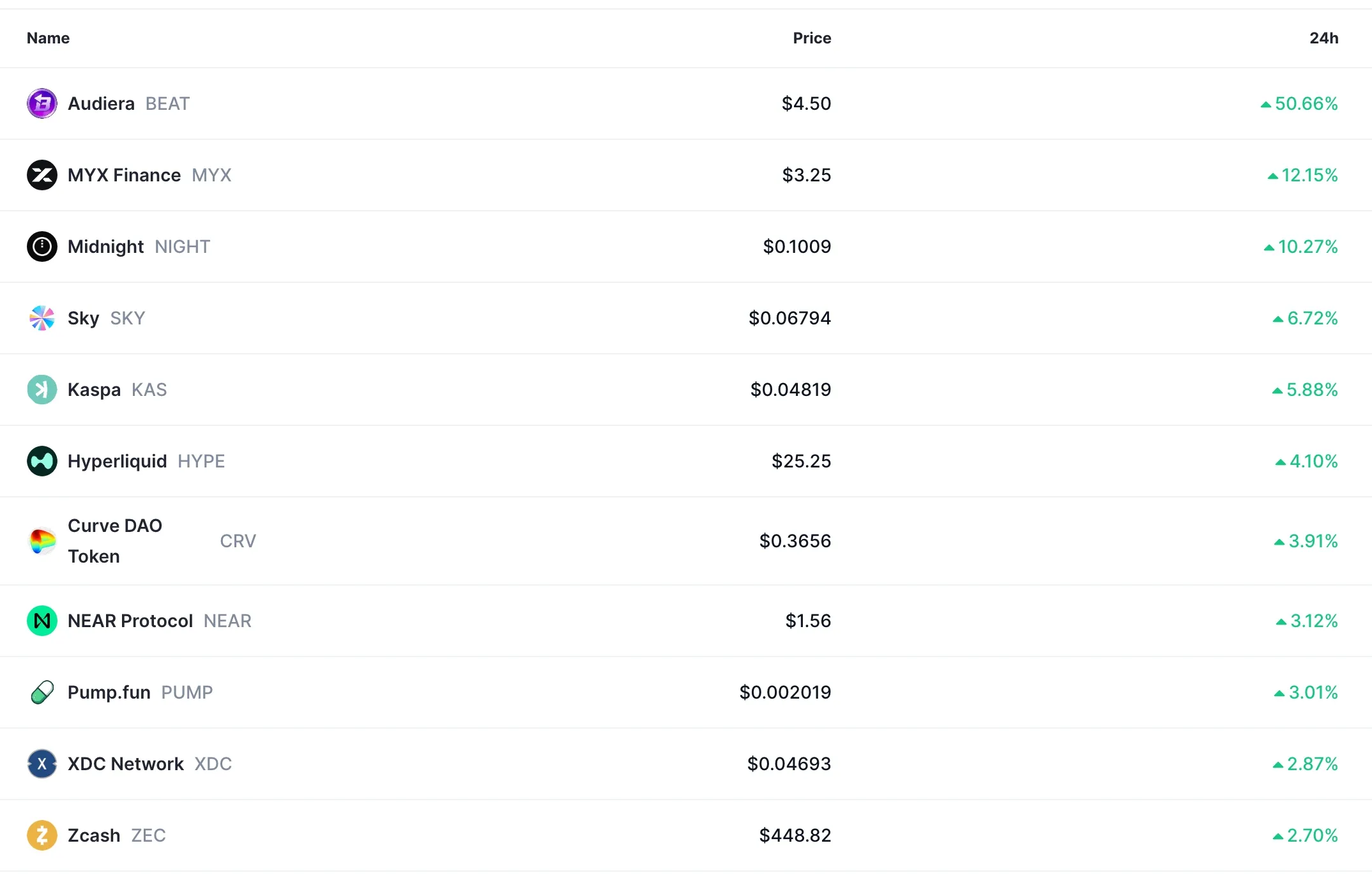 The crypto market is rising today, with Bitcoin and top altcoins continuing the bull run that began over the weekend. Bitcoin surged to $90,000, while Midnight (NIGHT) surged 11%, with 24-hour volume reaching $8 billion.