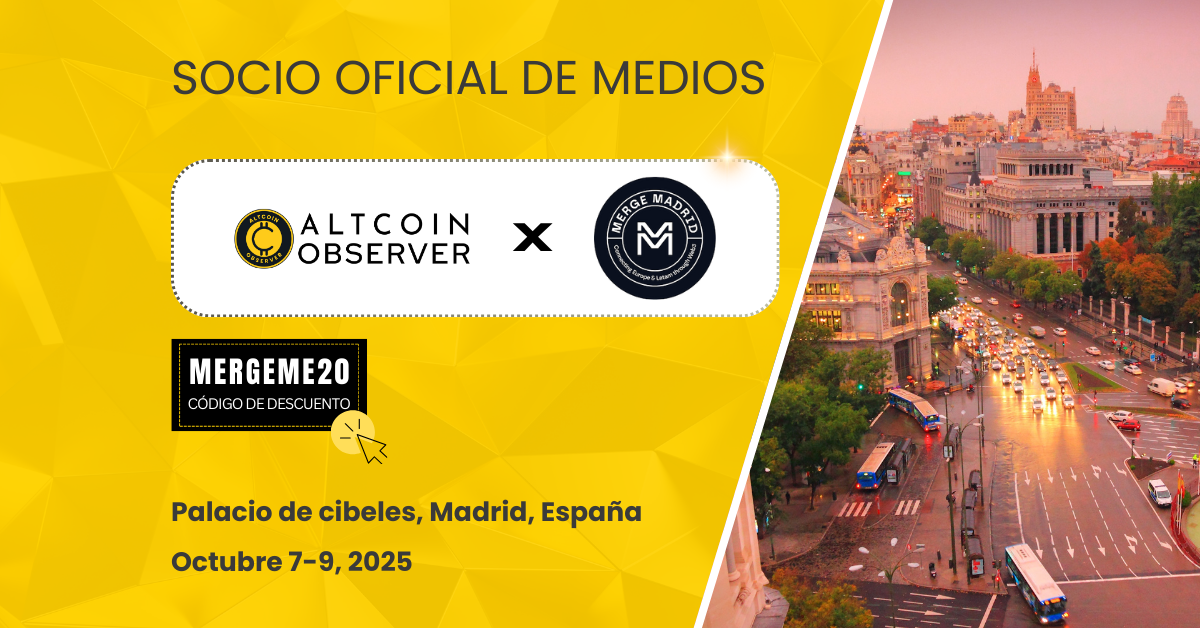 Altcoin Observer, medio líder en el ecosistema Web3, se complace en unirse a MERGE Madrid como socio de medios. Gracias a esta alianza, brindaremos cobertura exclusiva, entrevistas y análisis clave del evento, llevando las conversaciones más relevantes a una audiencia global.