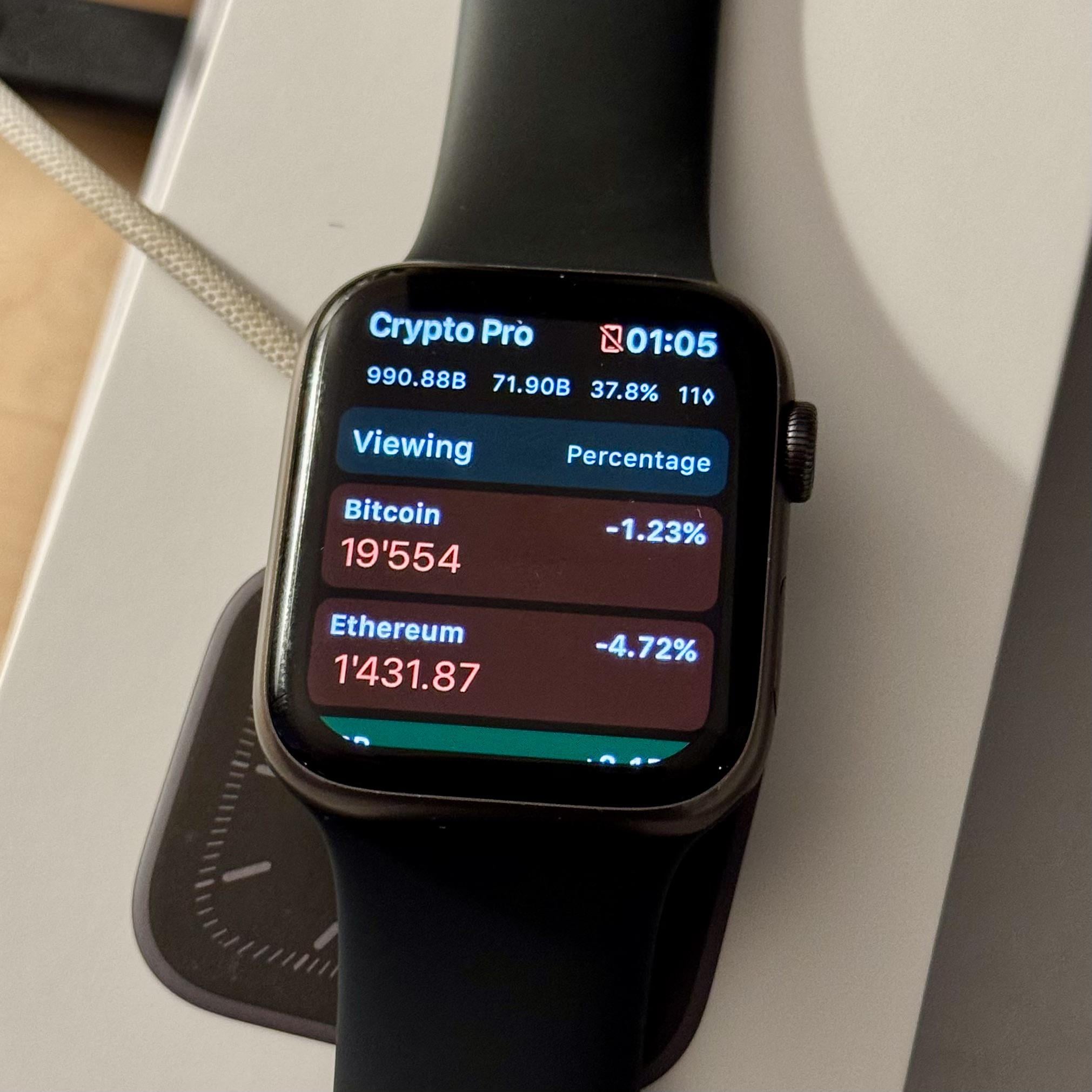 I powered on an old Apple Watch that had been sitting in a drawer for years. Once it woke up, it had Crypto Pro in the background and it showed the last prices it ever synced. Bitcoin was at 19’554 and Ethereum was at 1’431. The watch never refreshed again after that day.