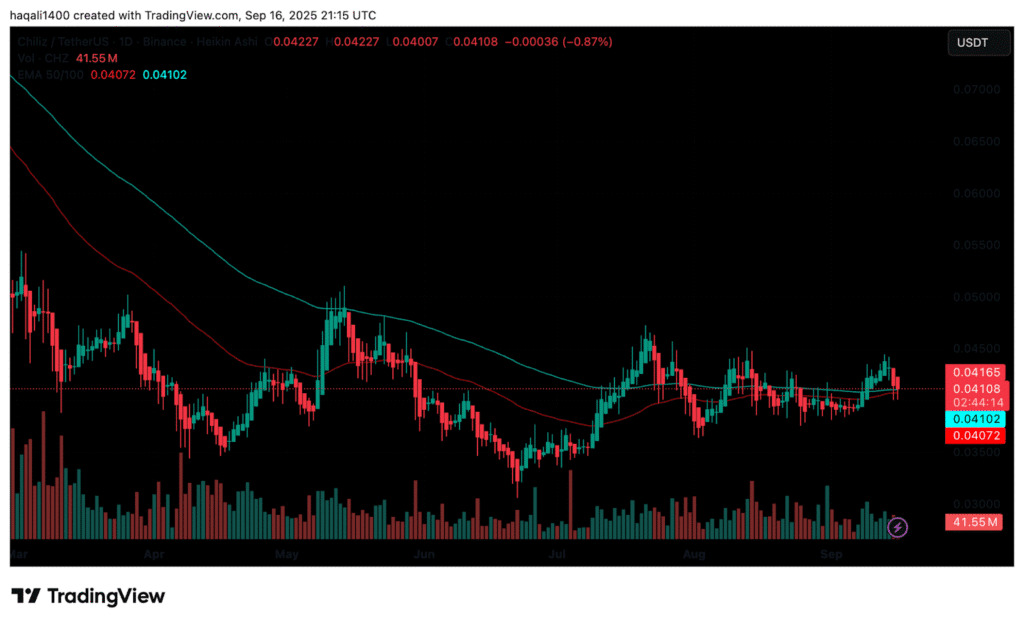 At the time of writing the editorial staff, CHZ exchanged about $ 0.0417 with a daily volume nearly $ 39 million.