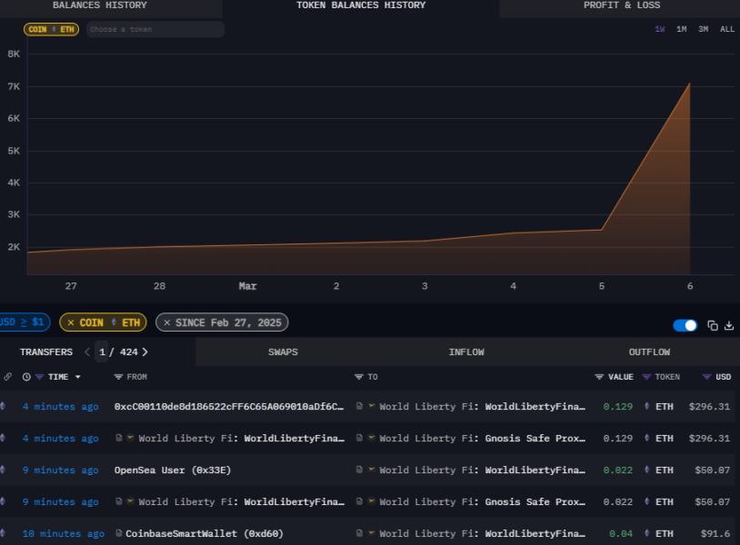 Trump’s World Liberty Financial (WLFI) platform has tripled his ether Ethusd Assets in the last seven days while the ETH fell below the psychological brand of $ 2,000, reversing $ 1,991 on March 4, according to Cointelegraph Markets Pro.