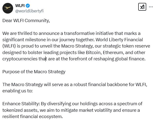 Trump’s WLFI launches the “Macro Strategy” fund for Bitcoin, Ether, Altcoins